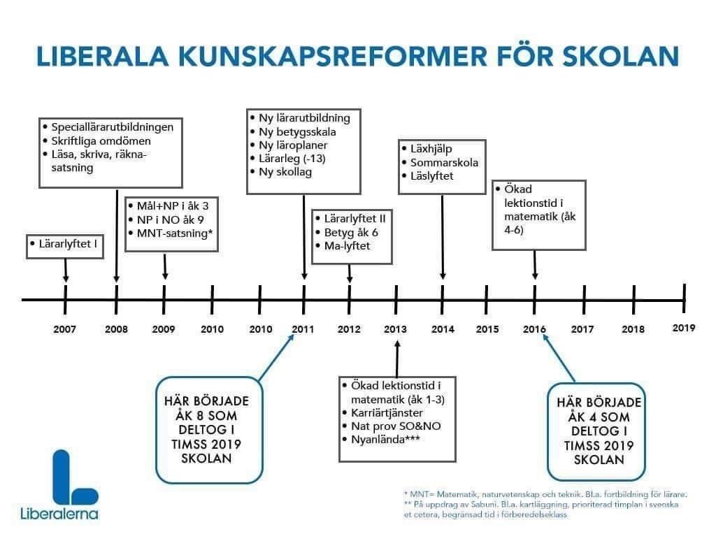 I tisdagens skolmätning har man testat kunskaperna i matematik och naturvetenskap hos elever i årskurs 4 och årskurs 8. Samtliga av dessa elever har genomgått den grundskola Liberalerna reformerade under vår tid i regeringsställning.