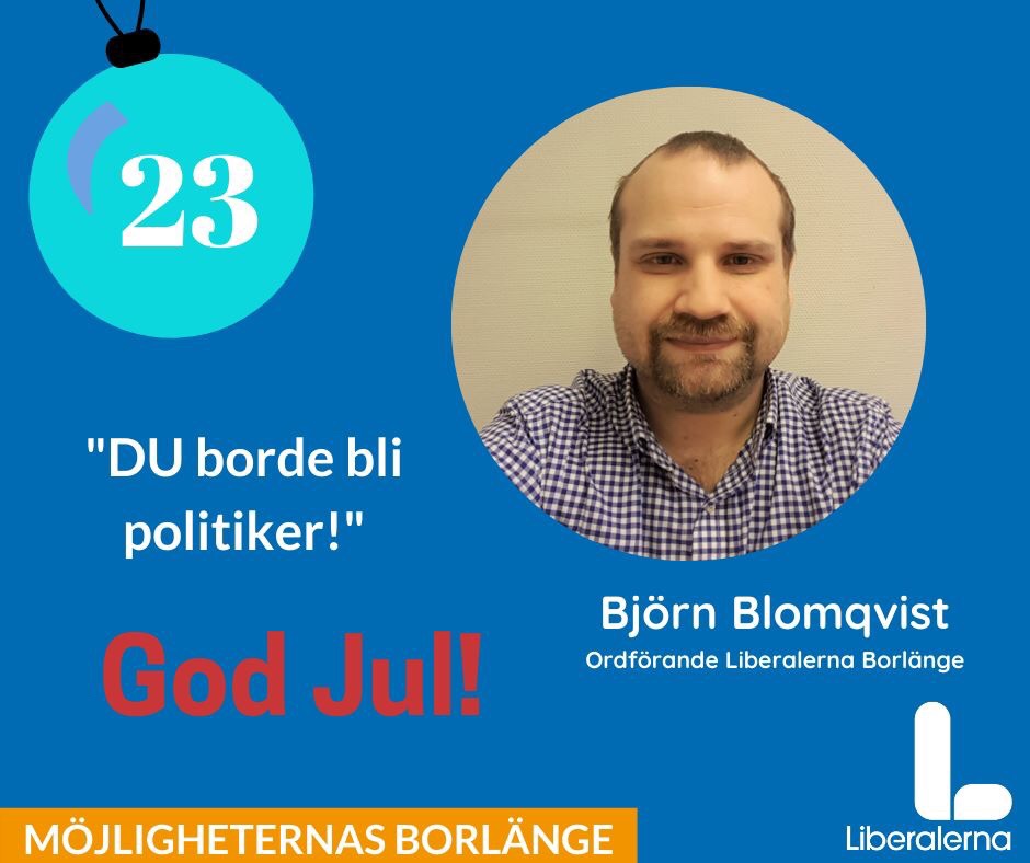 Här kommer ett gästspel och hälsning från Borlängeliberalernas ordförande Björn Blomqvist: