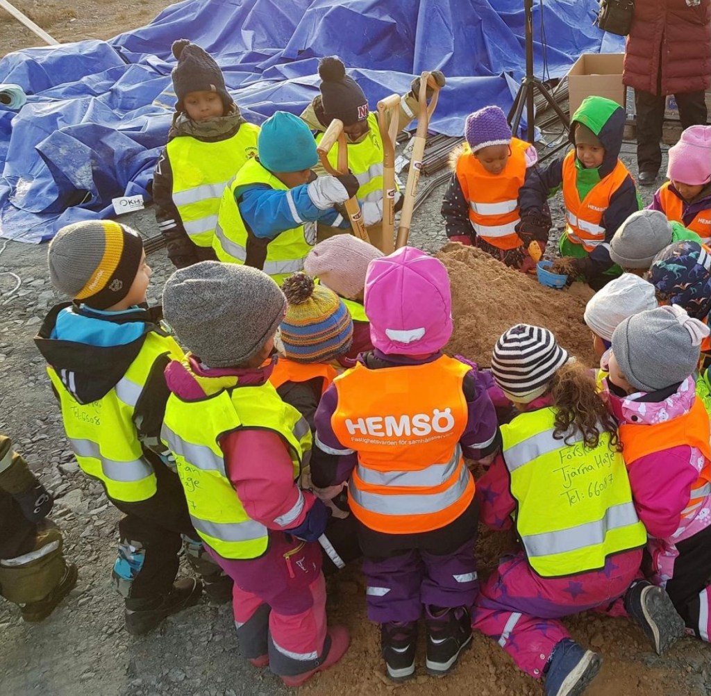 13 januari 2020 tog vi första spadtaget för Paradisskolan. Då hade planering och projektering pågått länge. Annorlunda med det här bygget är att ett externt företag, Hemsö, bygger skolan och sedan kommer kommunen hyra in sig i lokalerna. Det är en spännande lösning. Kommunen behöver inte låna och bygga alla samhällsfastigheter. Det blev en härlig förmiddag! Förskolebarnen som var med var förväntansfulla och tog också sina egna spadtag. Barnen på bilderna har fått ok från sina vårdnadshavare att finnas med på bilderna.