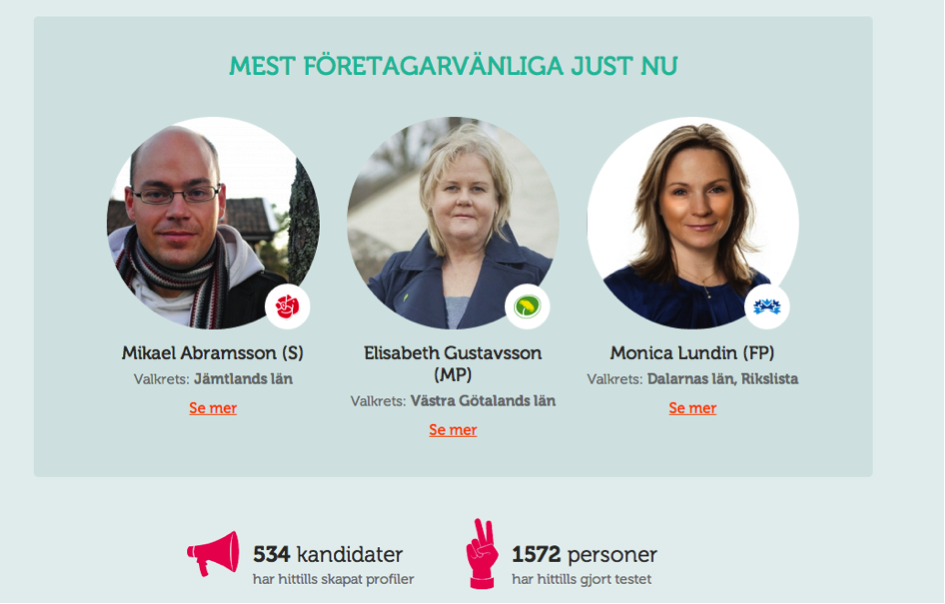 Vi måste förbättra villkoren för företagare och reglerna ska vara enkla och tydliga. Jag önskar att vi kunde hamna i en kvalitetsdiskussion för välfärdsföretagen i stället för att prata vinstnivåer. Vi behöver införa avdragsmöjligheter för den som investerar i nya företag, forskning och utveckling. Vi behöver sänka bolagsskatten och slopa arbetsgivaravgifterna när unga och nyanlända anställs. Vi behöver liberalisera arbetsrättsreglerna (LAS) där kompetens ska väga tyngre. Dessutom tycker jag att fåmansbolagsreglerna (3:12-reglerna) ska ersättas med schablonregler och att småföretagens sjuklöneansvar ska slopas, för övriga företag ska i första hand den andra sjuklöneveckan slopas. Vi ska ha ett företagande värd namnet i Sverige.